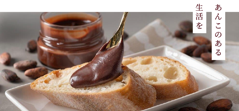 優しい甘味の藤戸まんぢゅうのこしあんと香り豊かなチョコレートを合わせた和と洋のペースト。トーストには、もちろんのこと、アイスクリームやミルクに溶かしたり乳製品にもよく合います。食事にもおやつにもさまざまなアレンジメニューでお楽しみください。