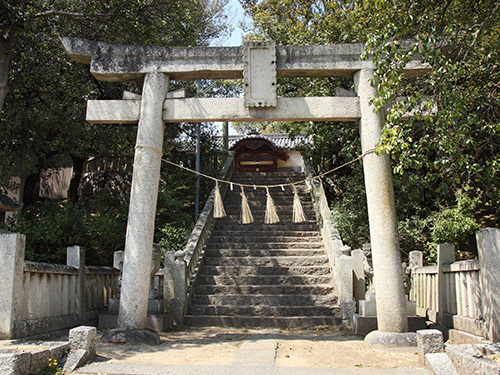 藤戸合戦以前より古くから、住民の守護神として祀られていた社だが、佐々木盛綱が藤戸合戦へと出陣する前に社頭にあった松に旗を立てて戦勝を祈願したところ、大勝を収めることとなった。その神威にいたく感動した盛綱は、もとは小高い場所にあった社を現在地に移して社殿を造り、遷宮したとされている。