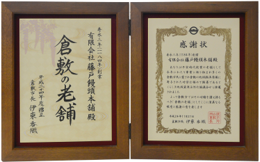「藤戸まんぢゅう」を提供し、感謝状を拝受いたしました。